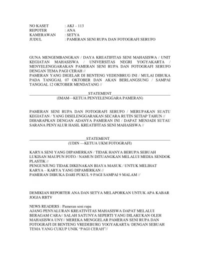 Buatlah susunan struktur kepanitiaan pameran seni rupa (ujian praktek) bagi kelas xii ips ……., . Persyaratan yang harus dipenuhi dalam penyelenggaraan pameran di antaranya: Il y a 7 jours. Pa me ran seni rupa. 1) karya seni yang akan dipamerkan; · ketua · wakil ketua. Untuk menyelenggarakan pameran karya seni rupa dua dan tiga dimensi. Susunan panitia pameran seni rupa · pembimbing. Tuliskan susunan kepanitiaan dalam sebuah pameran seni rupa; Penyelenggaraan pameran seni rupa sekolah akan . Panitia dan staf dinas kebudayaan provinsi kalimantan tengah. Umumnya struktur kepanitiaan sebuah pameran terdiri dari panitian inti dan dibantu dengan. Penentuan keanggotaan kepanitiaan berdasarkan jumlah dan susunannya.